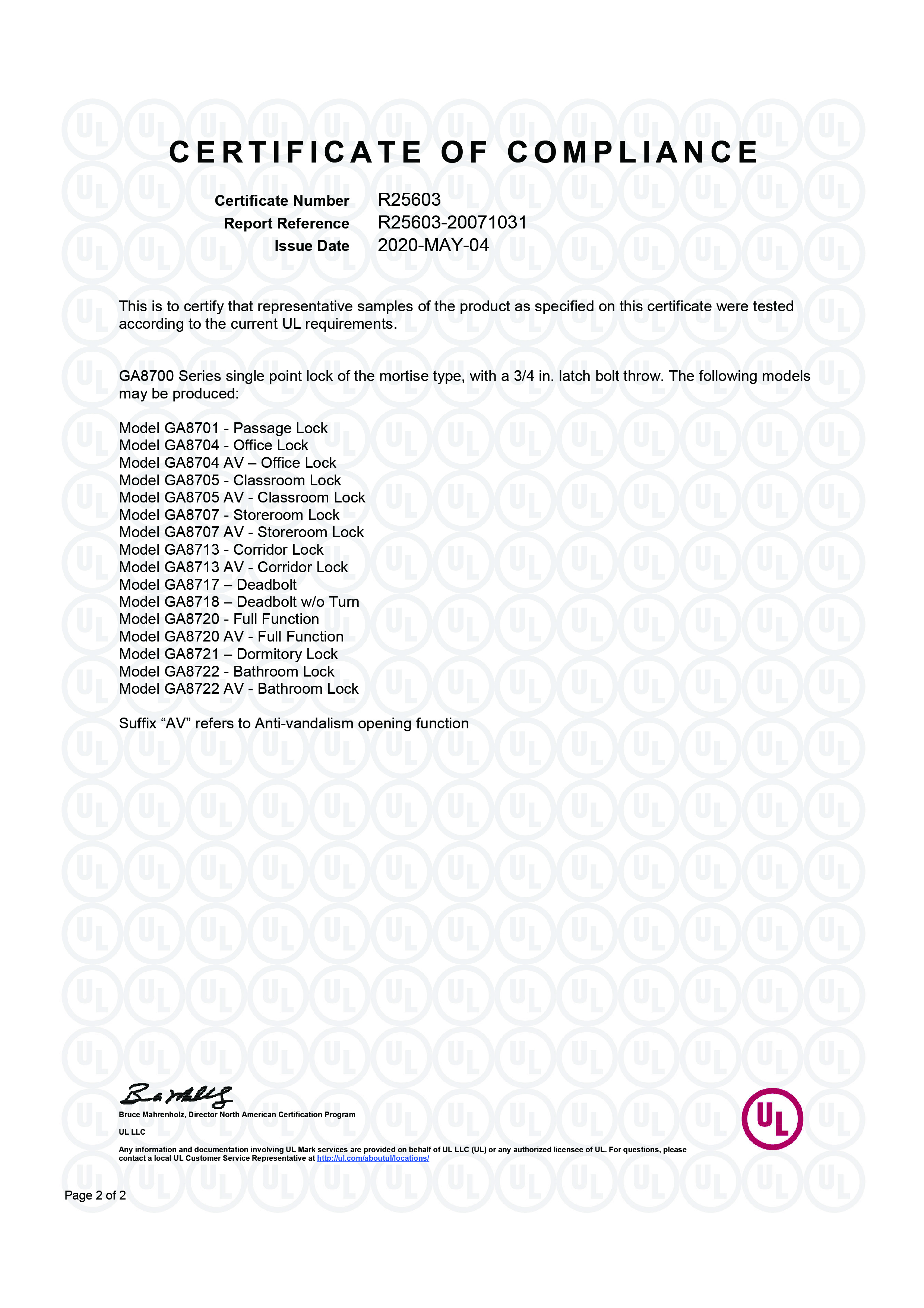 浙江堅迪五金制造有限公司始建于 1995 年。自 2003 開始,公司致力于高標準商業(yè)鎖的研發(fā)工作,并于 2006 及 2007 年,8700 插芯鎖系列獲得美國國家標準 ANSI A 156.13-2005 一級、ANSI A 156.2-2003 二級和美國 UL 10C3 小時防火測試認證。自 1998 年以來,公司不斷提升產(chǎn)品和客戶服務(wù)品質(zhì),并獲得了 ISO 9001 的認證。